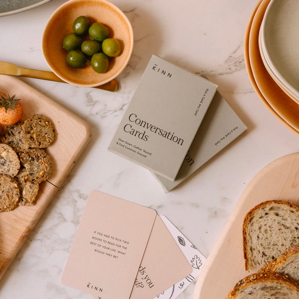 Del equipo de Intelligent Change (que también nos trajo los populares diarios de cinco minutos y planificadores de productividad) llega Get Closer plataformas de conversación. Estas preguntas seleccionadas están inspiradas en la psicología positiva, una rama de la psicología centrada en cultivar la satisfacción y el contentamiento. Aquí puede encontrar tarjetas de conversación para parejas, familias, equipos de trabajo, extraños, primeras citas y más, y cada conjunto incluye indicaciones con distintos niveles de «cercanía». Sube un nivel, baja un nivel o continúa como está, según la comodidad de todos. ¡Los productos Intelligent Change están fabricados únicamente con materiales naturales, reciclados y biodegradables!