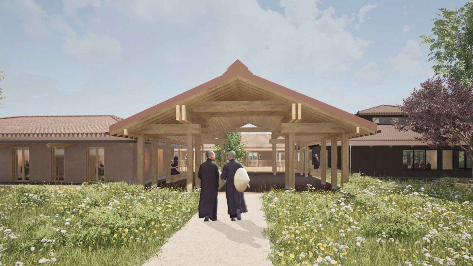 Las nuevas residencias de monjas contendrán instalaciones de entrenamiento, alojamiento para nuestra vida comunitaria, un zendo de práctica, biblioteca, habitaciones para nuestros mayores y aulas. Nuestra visión es seguir siendo accesibles, abiertos y relevantes, especialmente para los jóvenes y aquellos que necesitan becas, pero tenemos enormes desafíos.