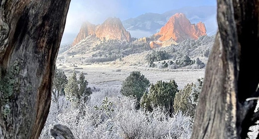 Estos enebros retorcidos constituyeron un excelente marco de la niebla que se levanta en el Jardín de los Dioses.