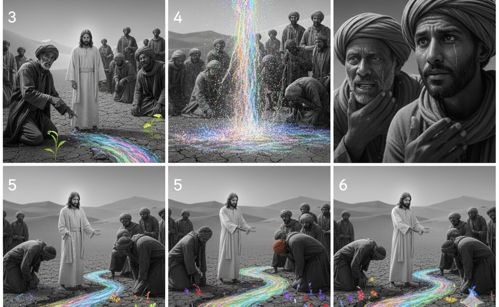 El guía de la caravana conocía un manantial de agua, pero al llegar al lugar, cansados y sedientos, ¡lo encontraron seco!