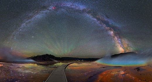Lane fotografió Abyss Pool en el Parque Nacional de Yellowstone justo después de que una tormenta pasara por el área; se puede captar el indicio de un relámpago entre los árboles en la luz central. La imagen contiene un sorprendente ejemplo de resplandor del aire, la débil emisión de luz en una atmósfera planetaria que impide que el cielo nocturno esté completamente oscuro. Cuando publicó la fotografía por primera vez en su página de Facebook, Lane explicó que en lugar de reducir la saturación del brillo del aire en un 10 % como suele hacer, la enfatizó en un 10 % con un suave ajuste en esta impresionante imagen. Pasó cuatro meses corrigiendo el color de las imágenes nocturnas para que coincidieran con los colores naturales que se ven durante el día en el Parque Nacional de Yellowstone.