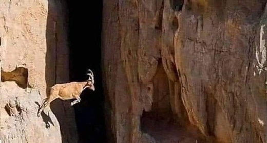 Salto de acantilado Cabra montés (Capra selvatica) en Kolah-Ghazi, Irán. Foto de : Behinn